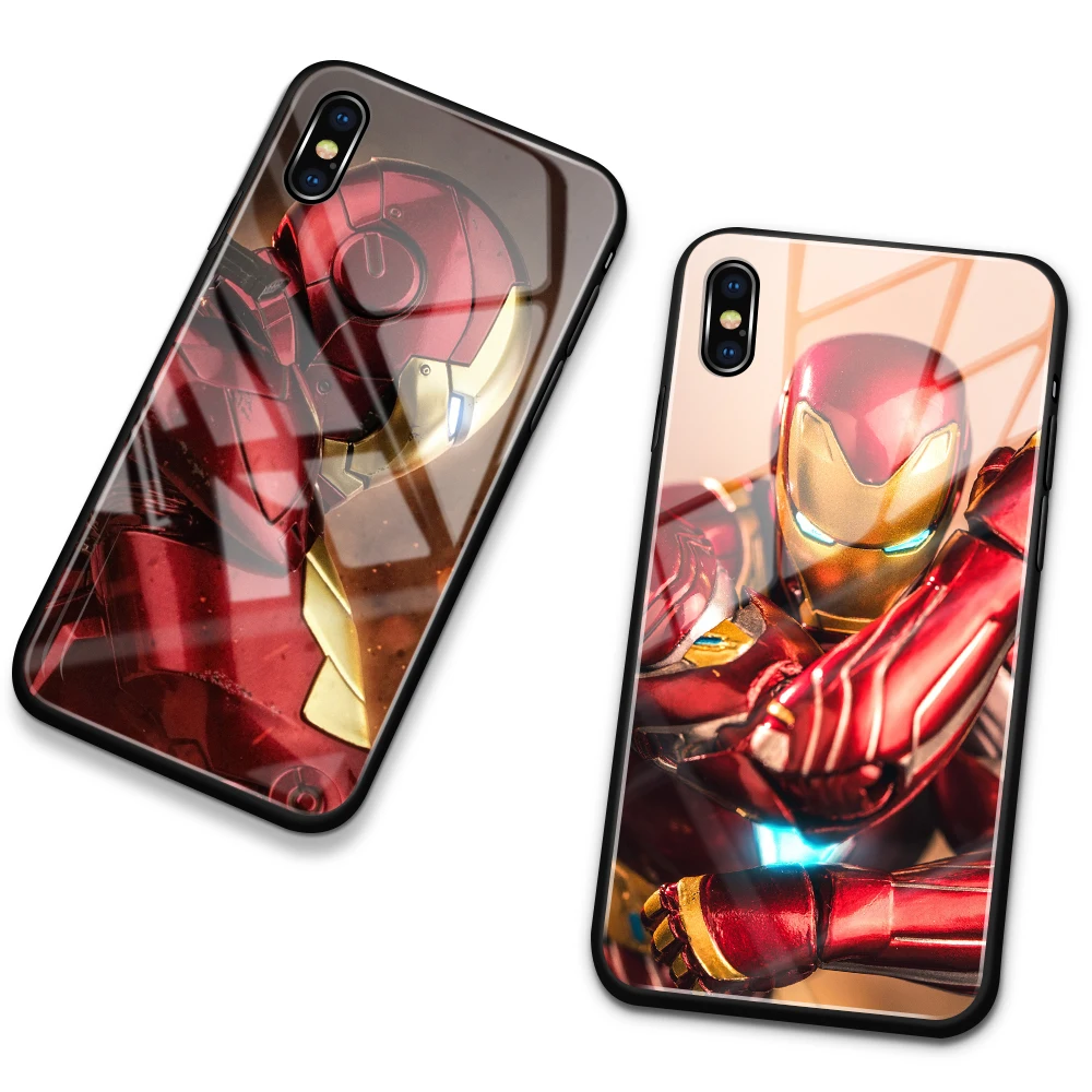 Luxury marvel avengers tempered glass phone case for all iphone versions.
